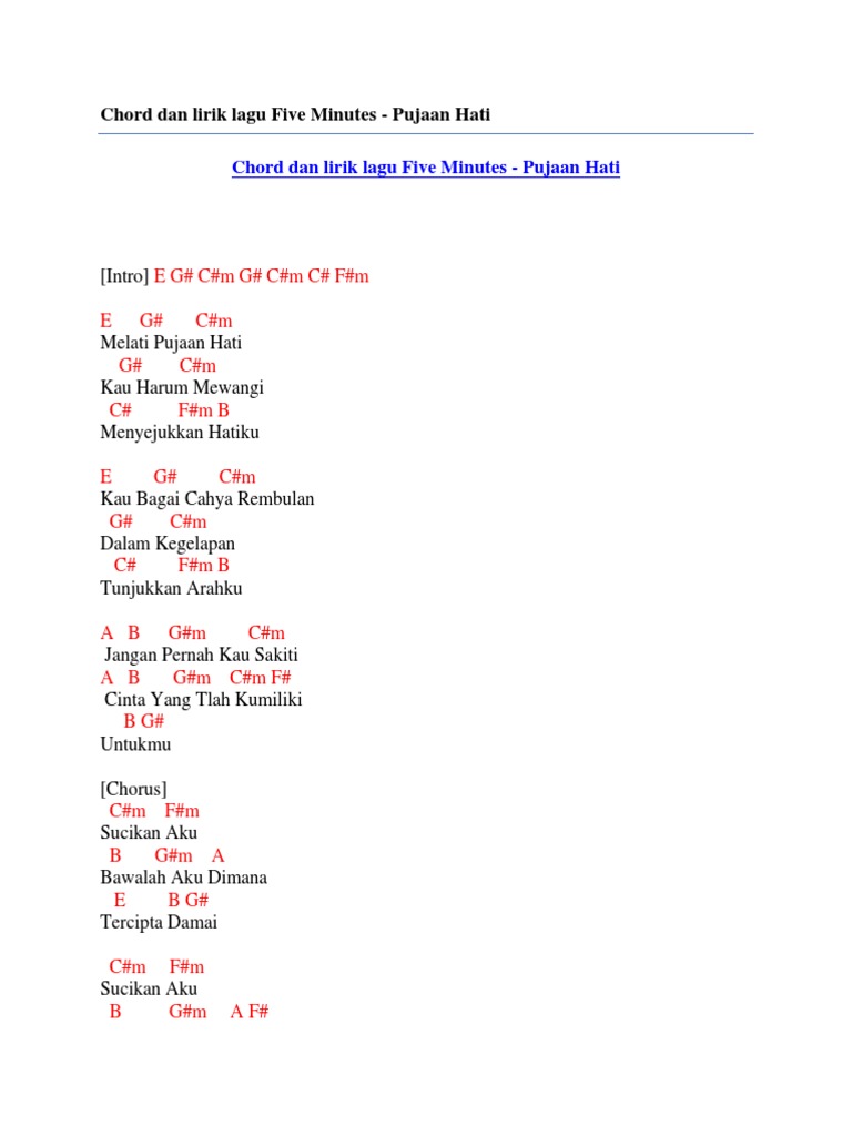 Chord Dan Lirik Lagu Five Minutes Pujaan Hati Pdf
