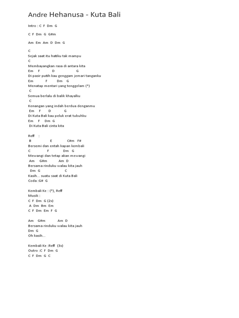Chord Cinta Di Pantai Bali Content